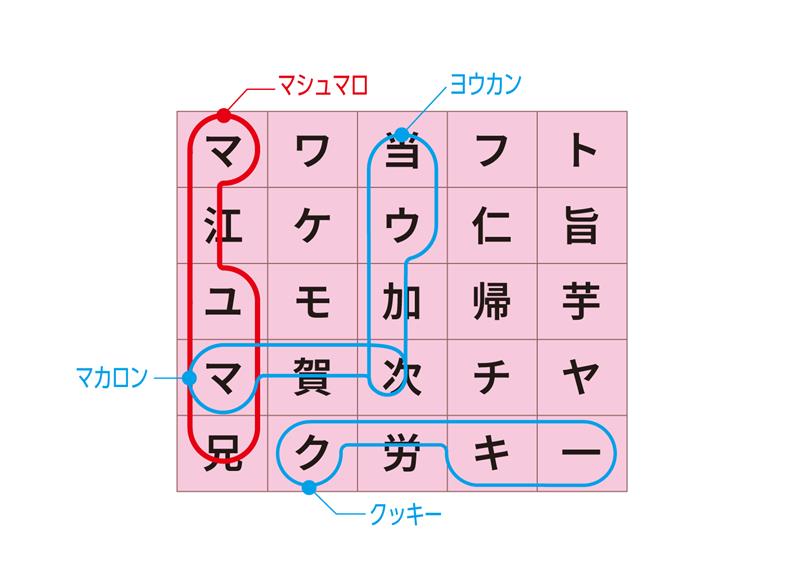 お菓子の名前を探していくと、いくつか見つかります。